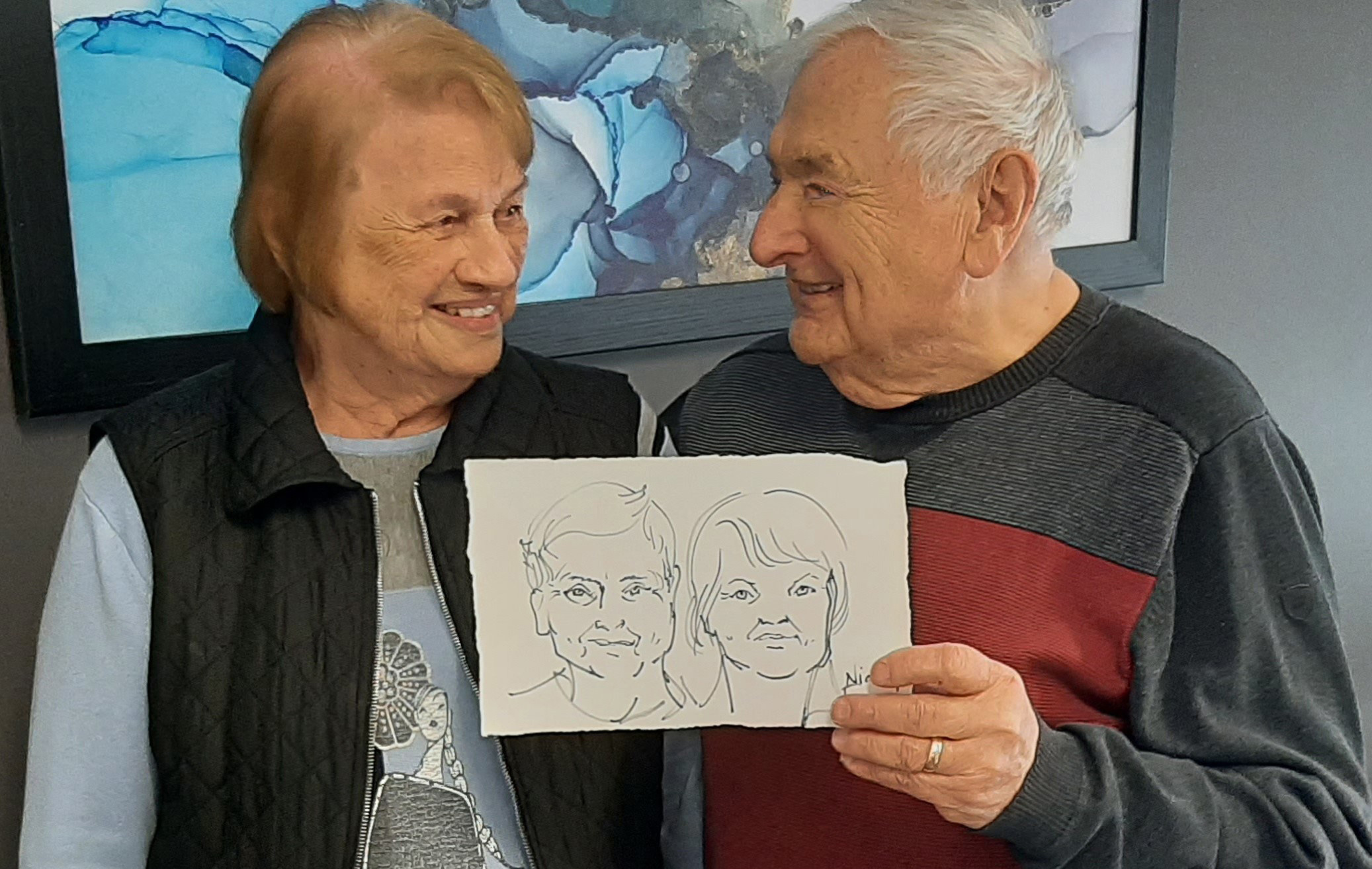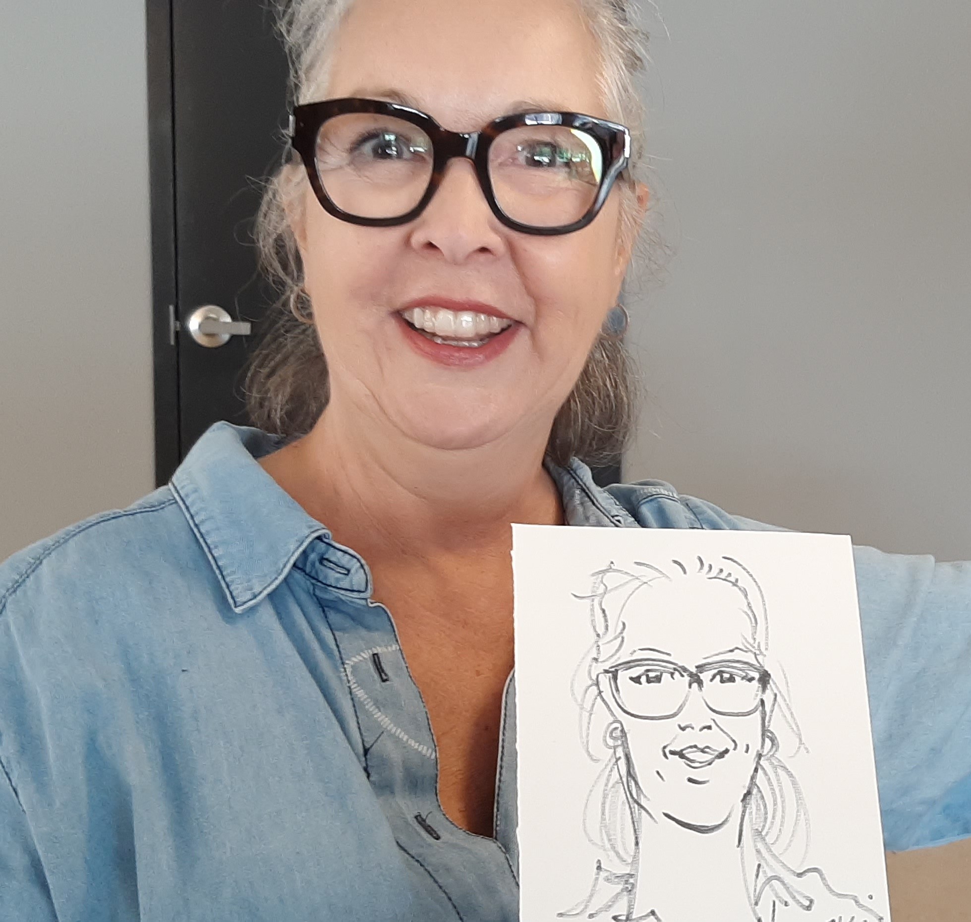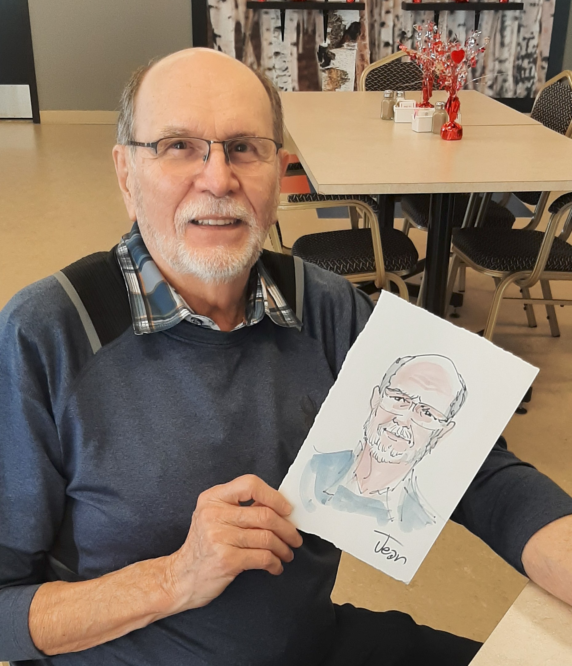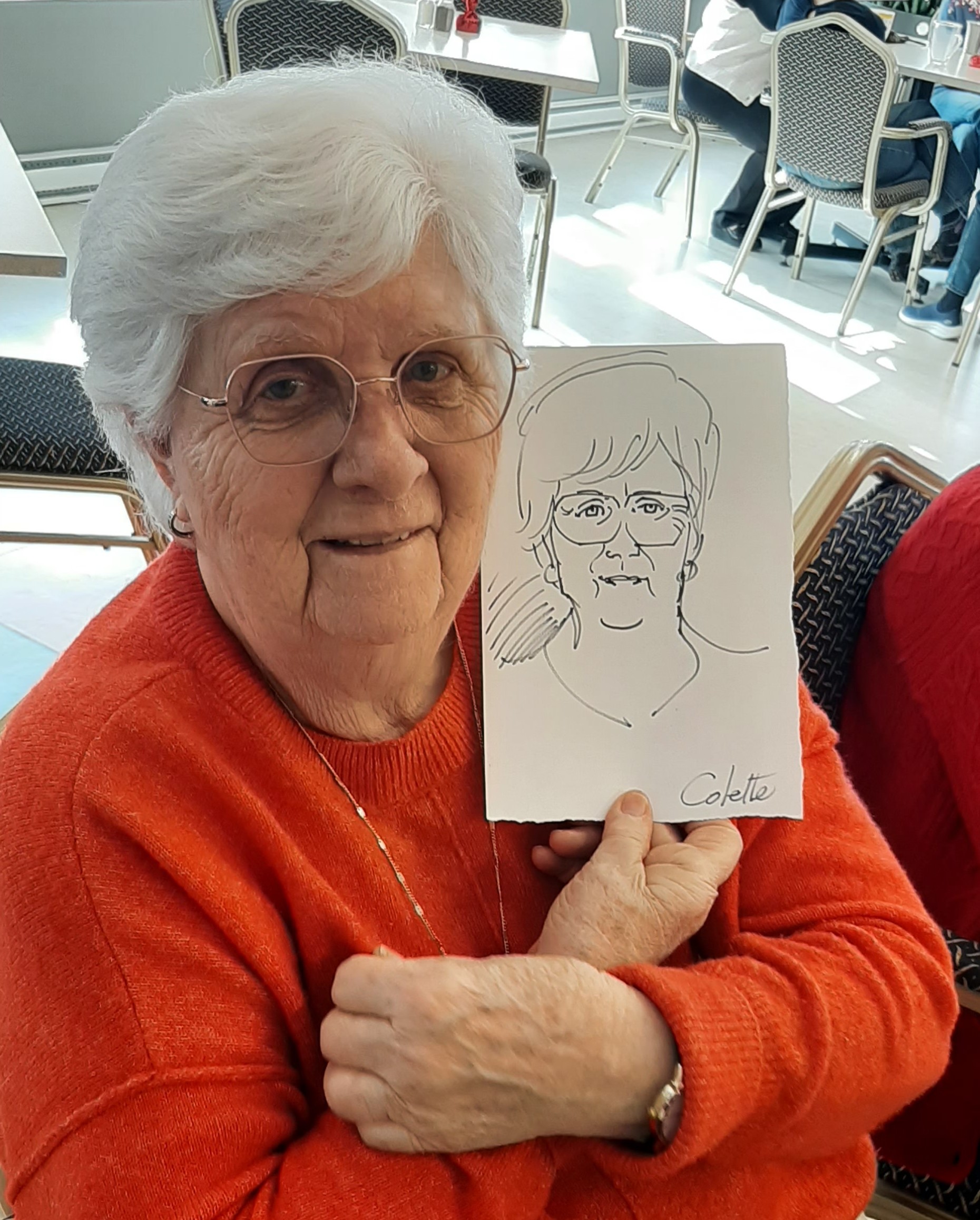 Pour agrémenter le petit déjeuner, nous avions invité M. Richard Forges, dessinateur, afin qu’il réalise quelques portraits-minute. Plusieurs membres ont répondu à l’appel, et même la directrice s’est prêtée au jeu.
